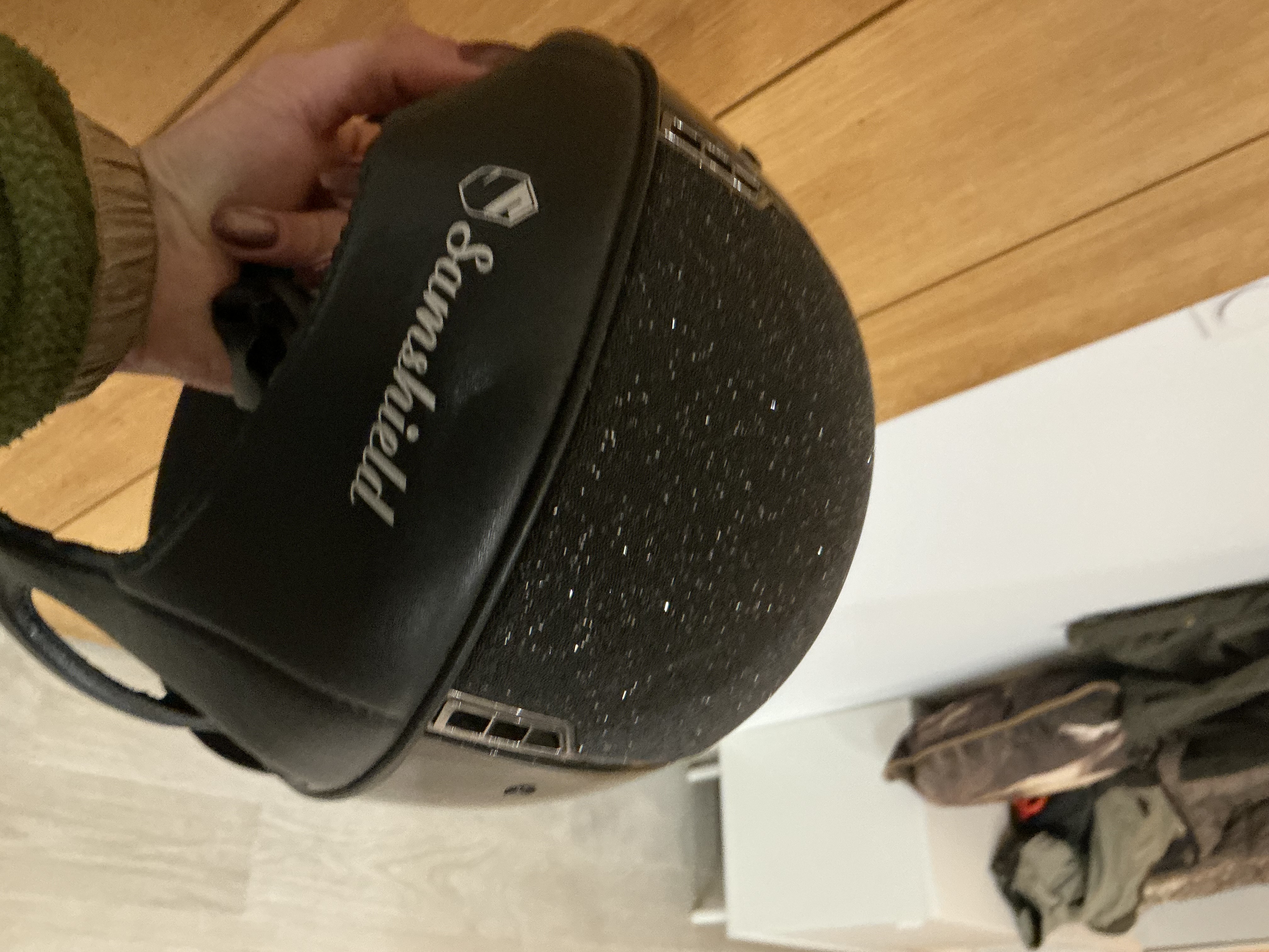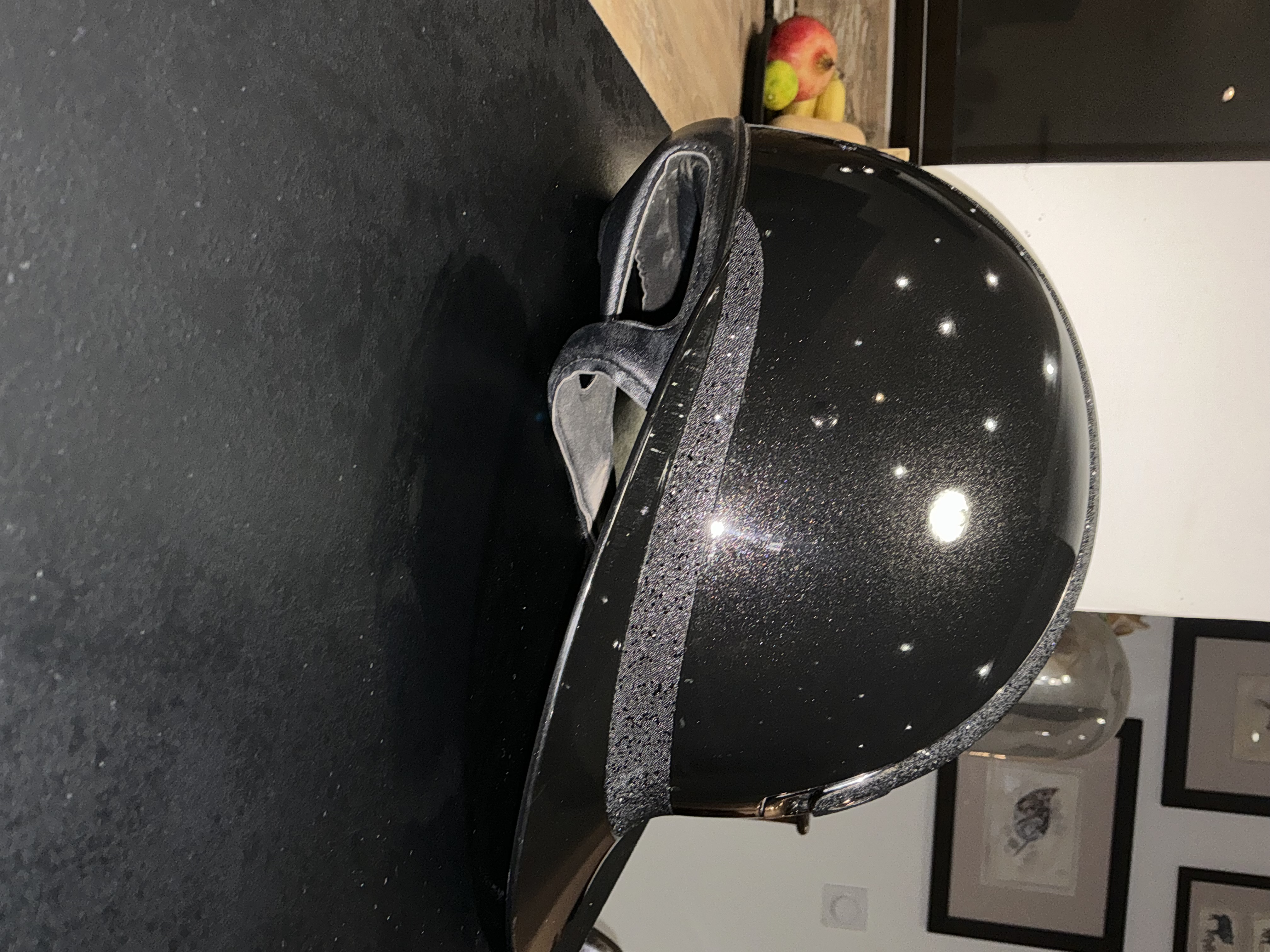 Casque miss Shield glossy noir avec le Crystal Fabric Swarovski pour une grande partie du casque . Vendu avec housse fine.