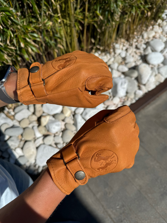 En cuir de buffle italien, ultra souple, avec passage de rênes renforcé et lanière de fermeture avec bouton-pression.