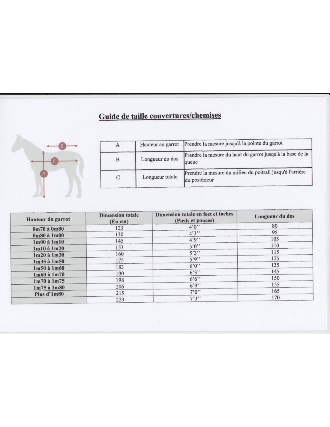 Légère avancée d'encolure. Deux attaches poitrail. Deux sangles ventrales croisées. Attache de queue.