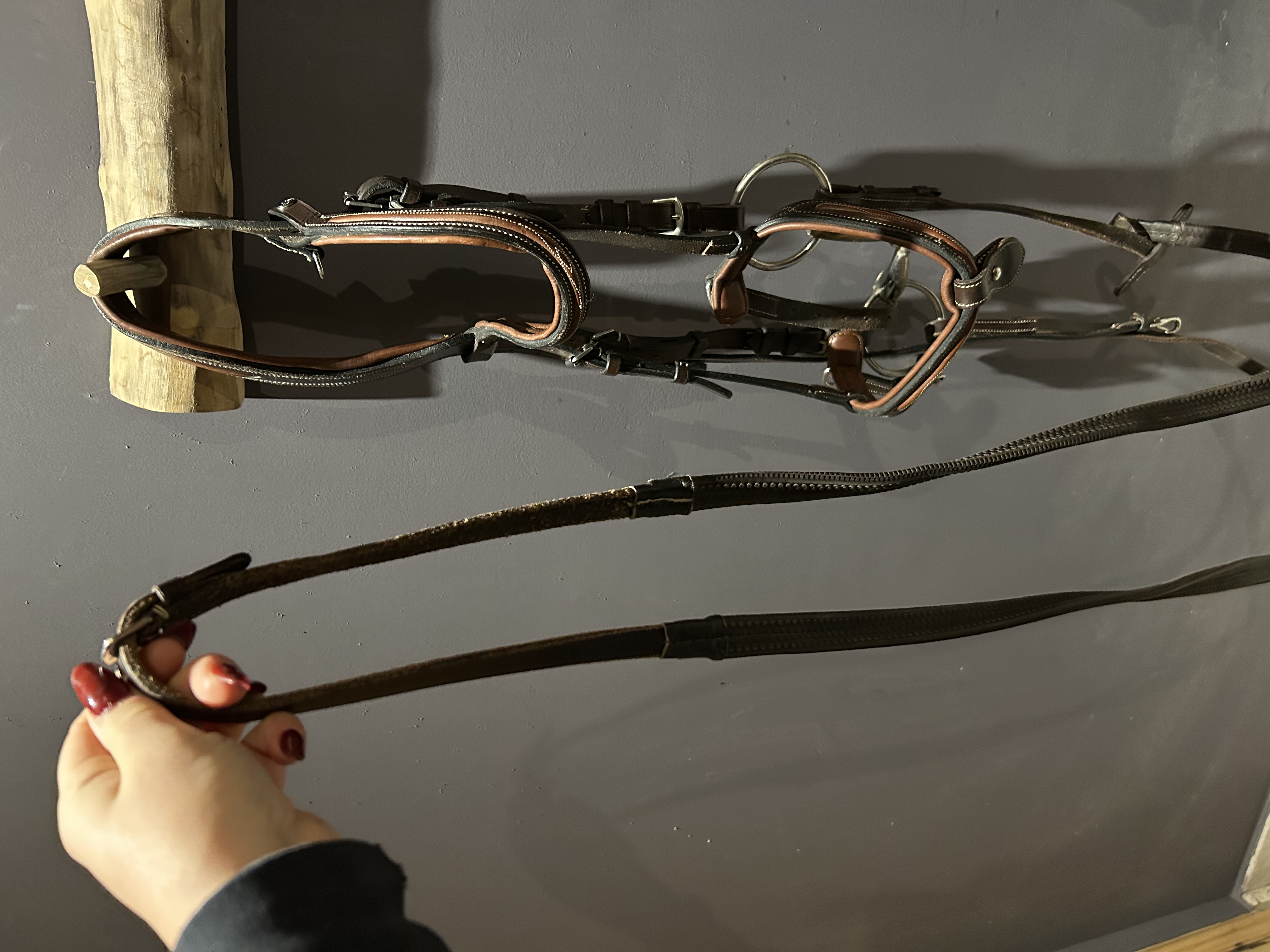 Filet porté plusieurs fois mais en très bon état général. Sera graissé avant envoi. Je ne connais pas la taille du mors donc je peux envoyer le filet avec ou sans
