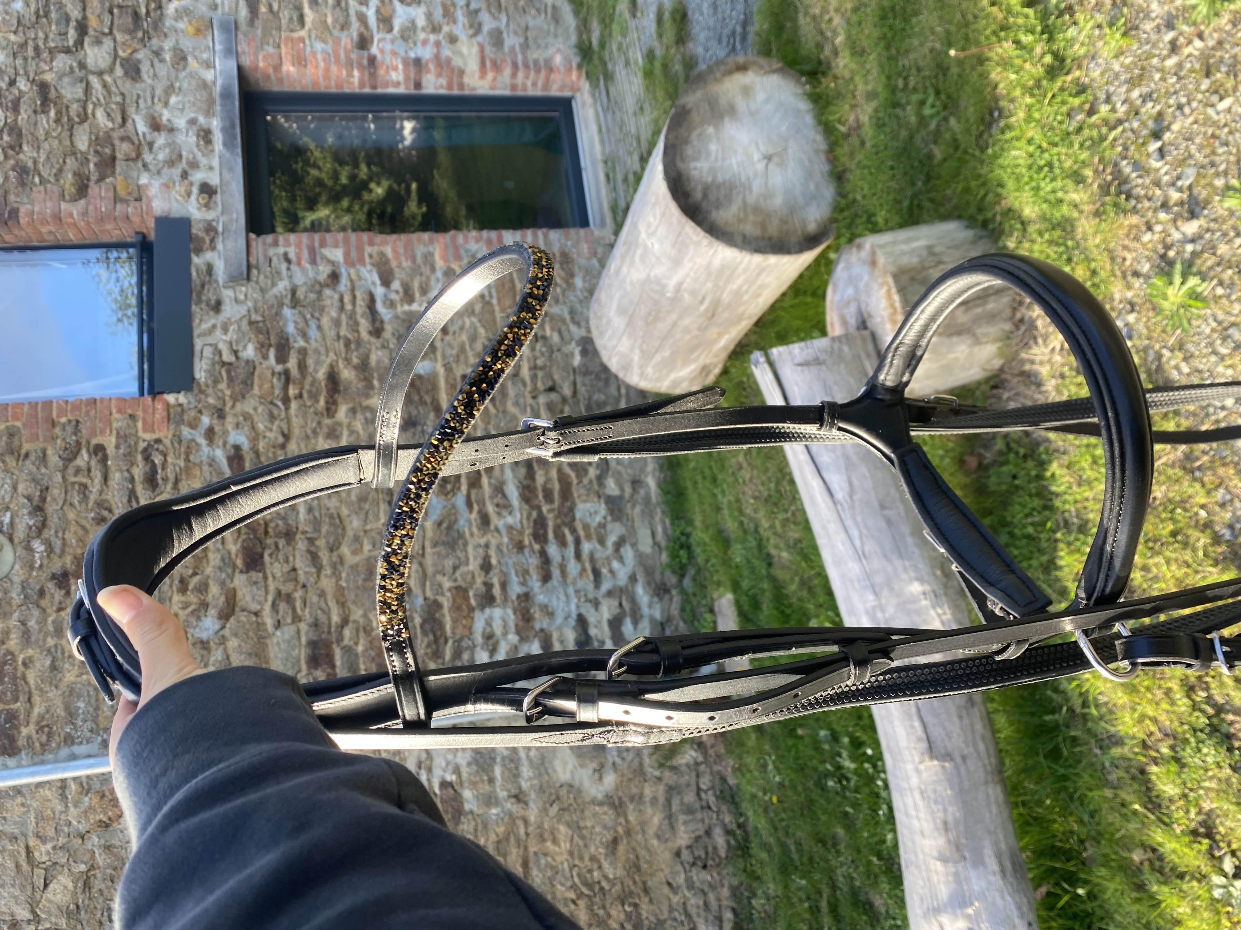 Bonjour, je mets en vente mon bridon sans mors de chez Kramer car il est un peu trop grand pour ma jument ( qui a une vraie petite tête ).