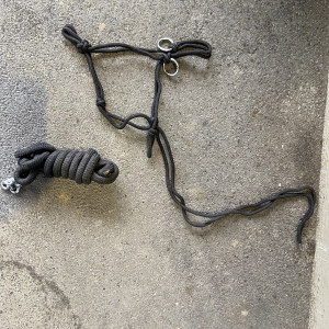 Licol Polyfun noir, marron glacé, blanc et attache en métal doré