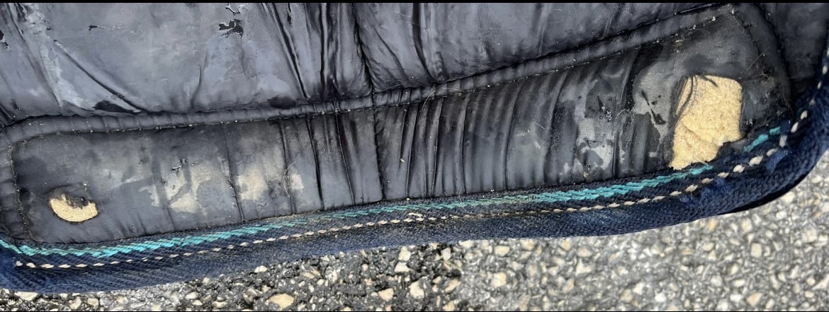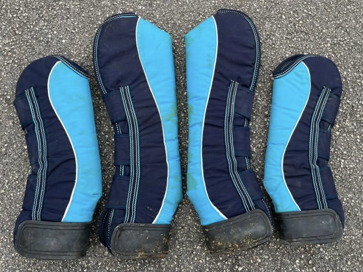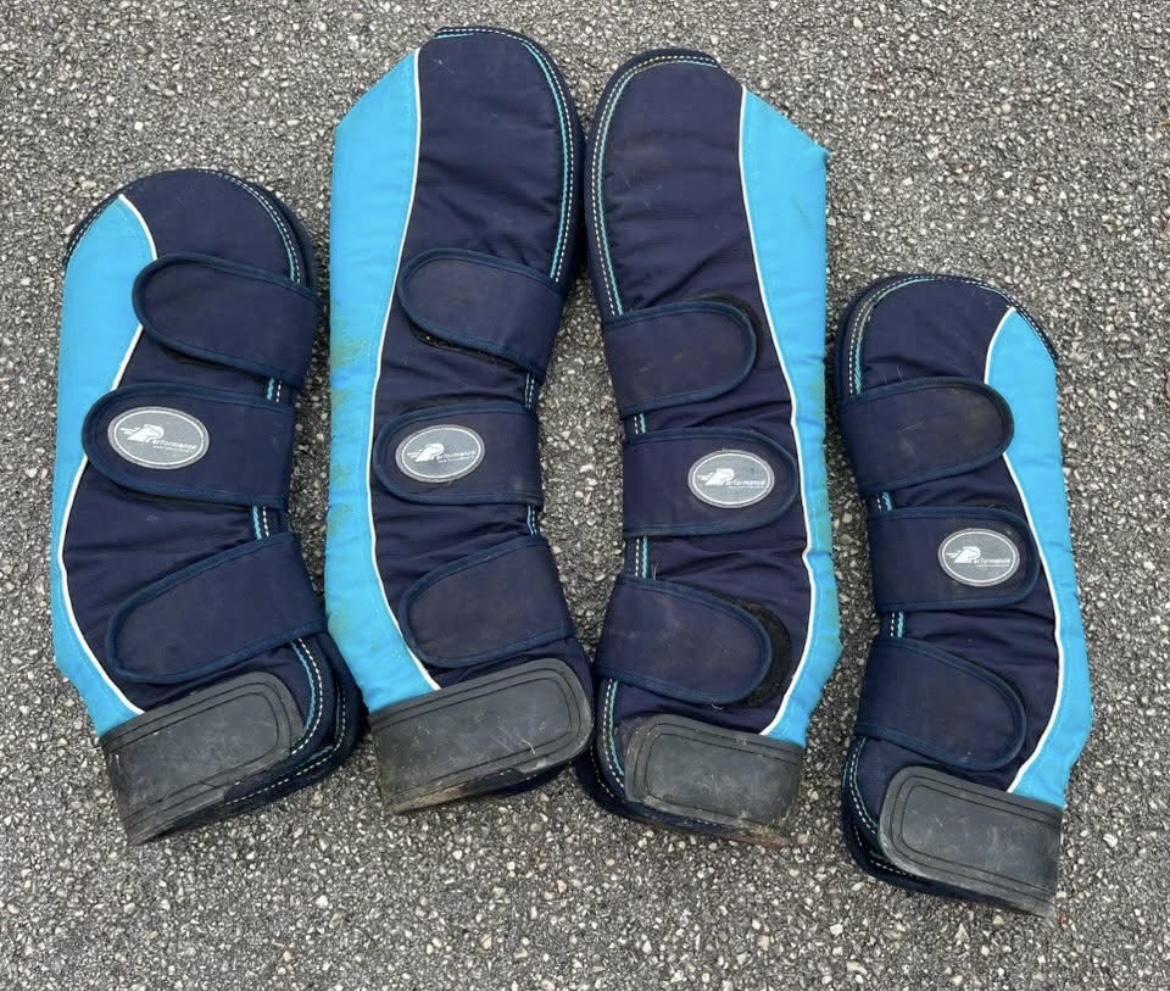 Convient aussi aux petits chevaux. Abîmé au niveau du tissu sur la guêtre antérieur droit et au niveau du plastique.
