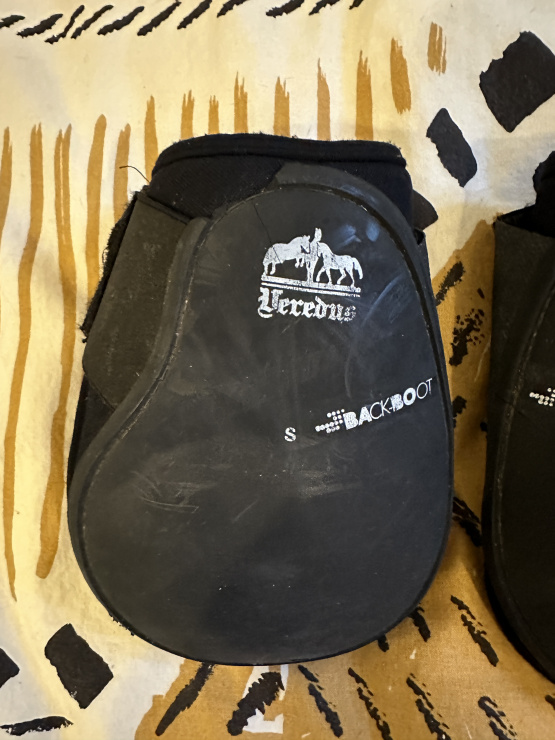 Protège-boulets Veredus Backboot, couleur noire, taille S (poney), en très bon état. Ces protège-boulets offrent une excellente protection des postérieurs tout en garantissant confort et liberté de mouvement. Idéals pour un usage en compétition ou à l'entraînement. Marque reconnue pour sa qualité haut de gamme. Envoi rapide.