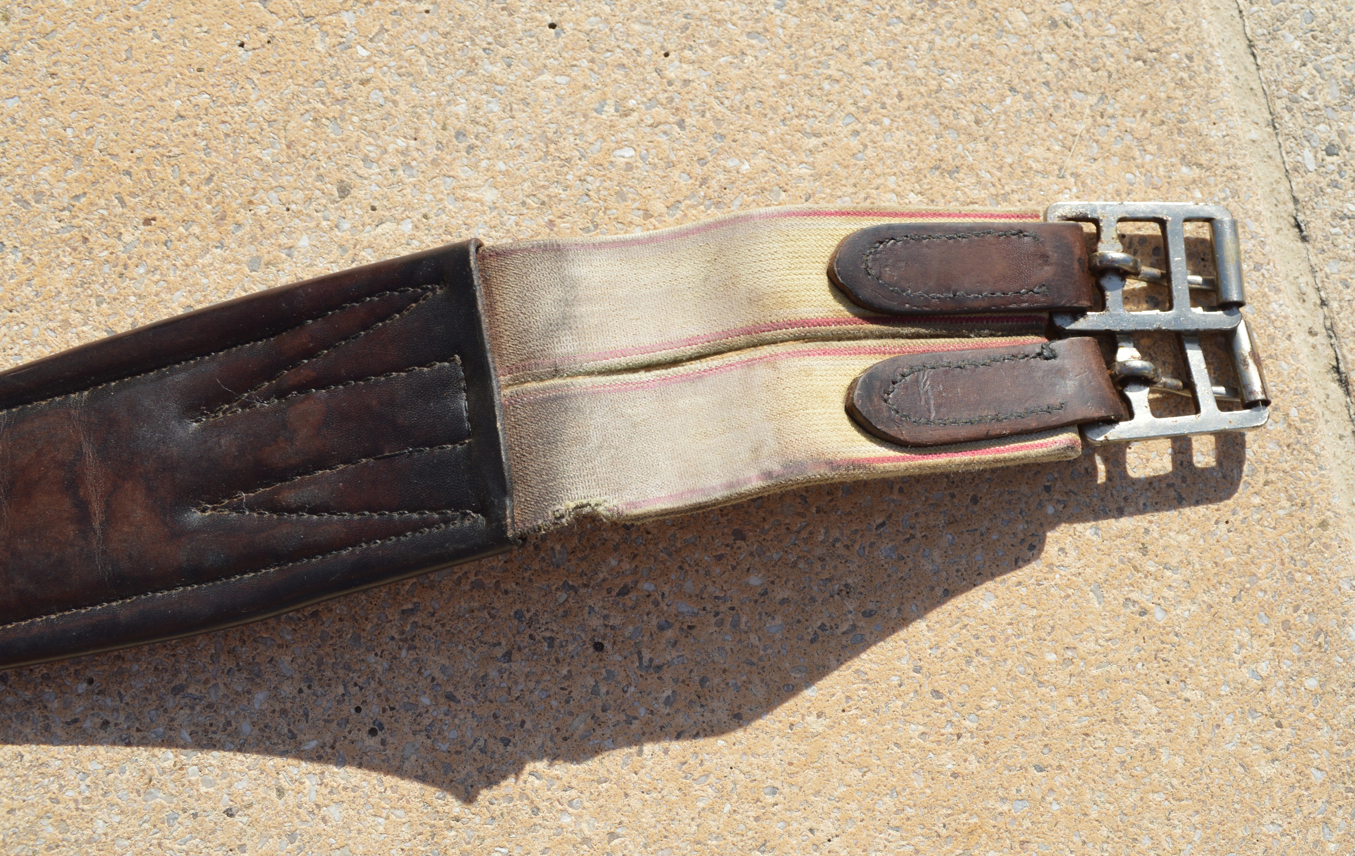 Sangle en cuir avec élastiques à une extrémité et équipée de boucles à rouleaux