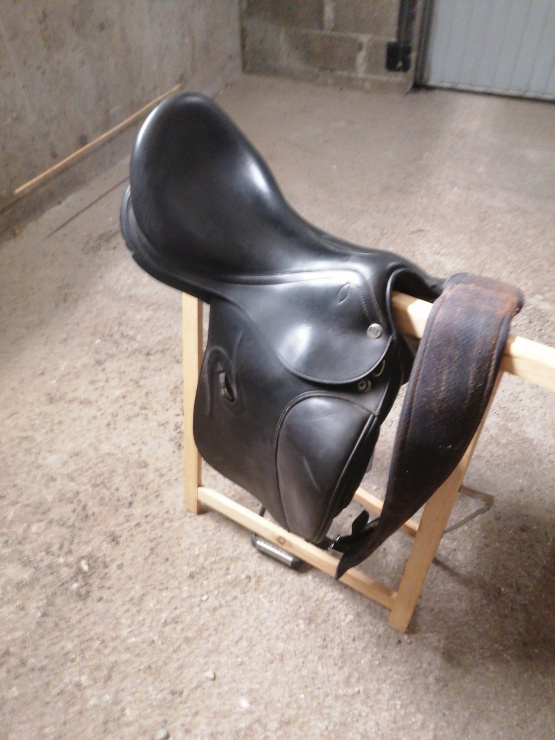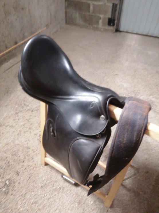 Selle en cuir de dressage de la sellerie Fouilloux. En bon état, Taille 18''.