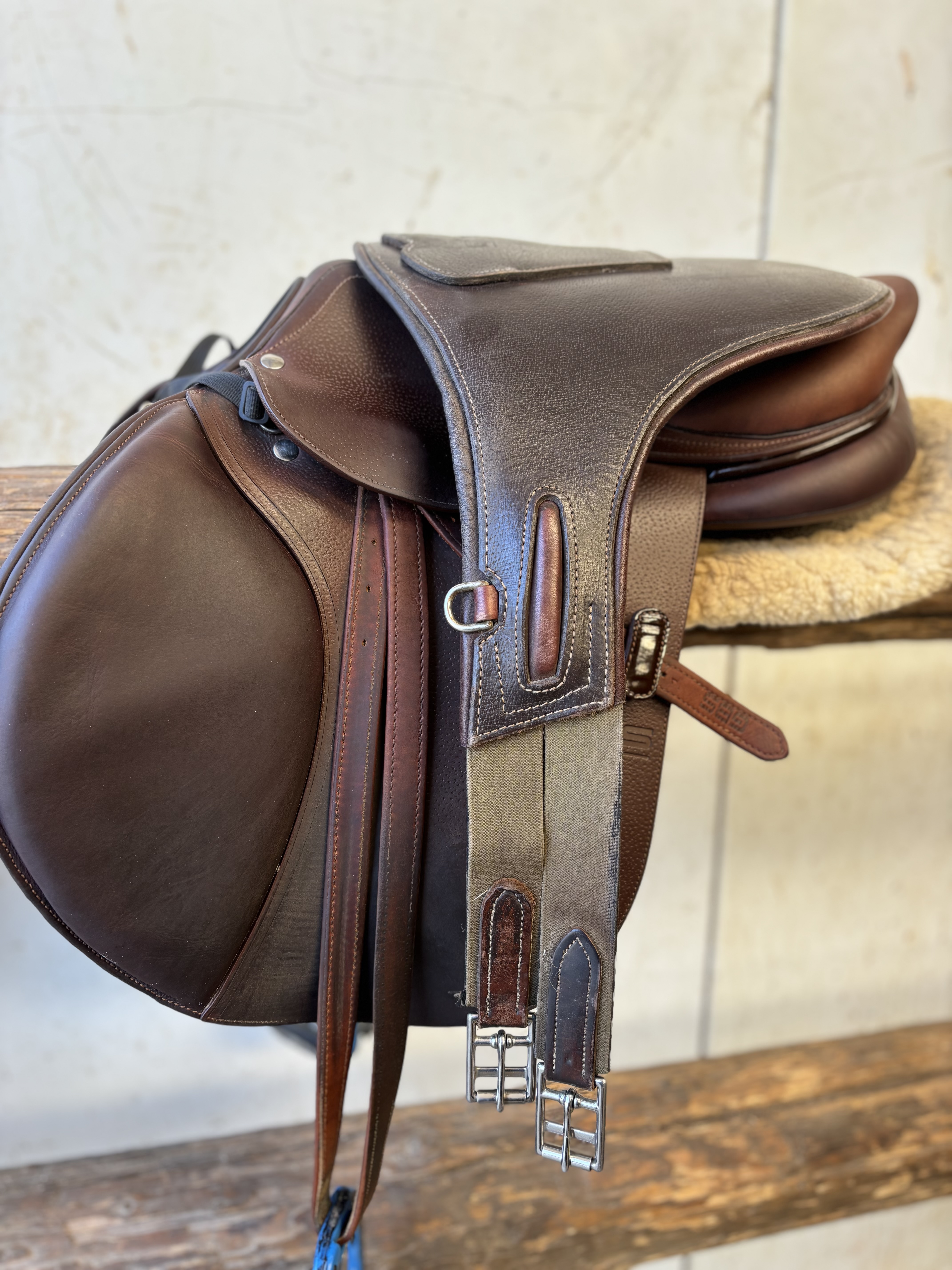 Je vends ma selle GBS modèle SSC, taille 17 pouces, âgée d’un an seulement, vendue avec sa bavette GBS aimantée pour la sécurité.
