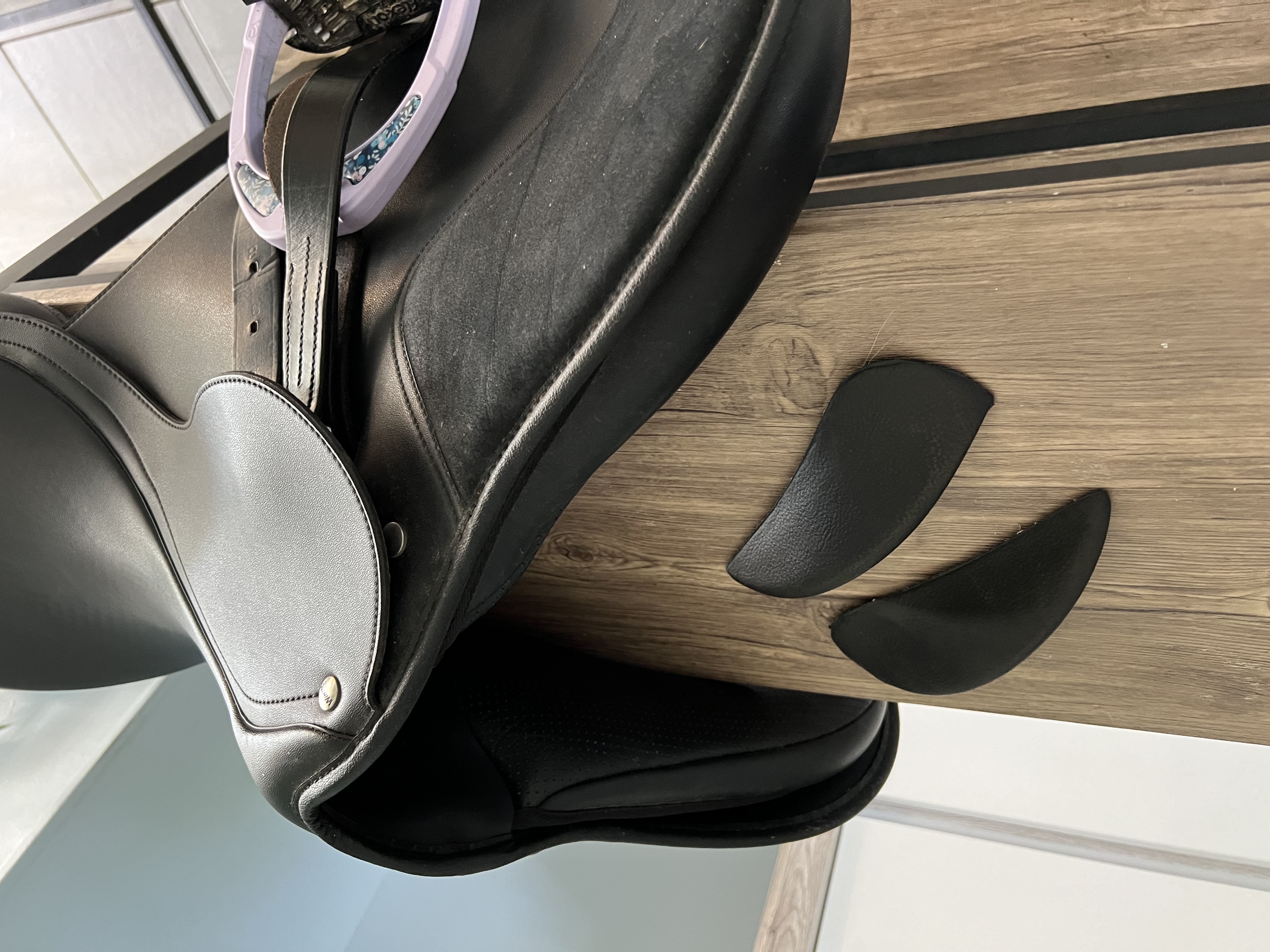 Vendu avec étrivière et housse mais sans les étriers et sans la sangle.