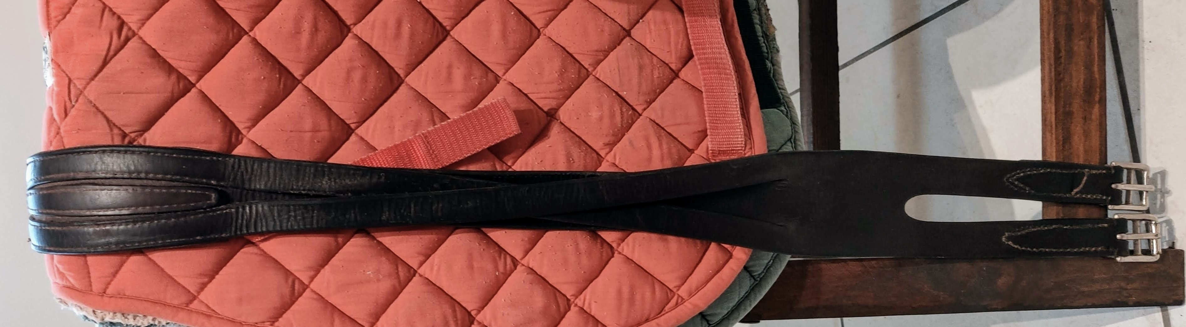 La selle est vendue avec une sangle en cuir Forestier, les étrivières et les étriers (caoutchouc à remplacer).