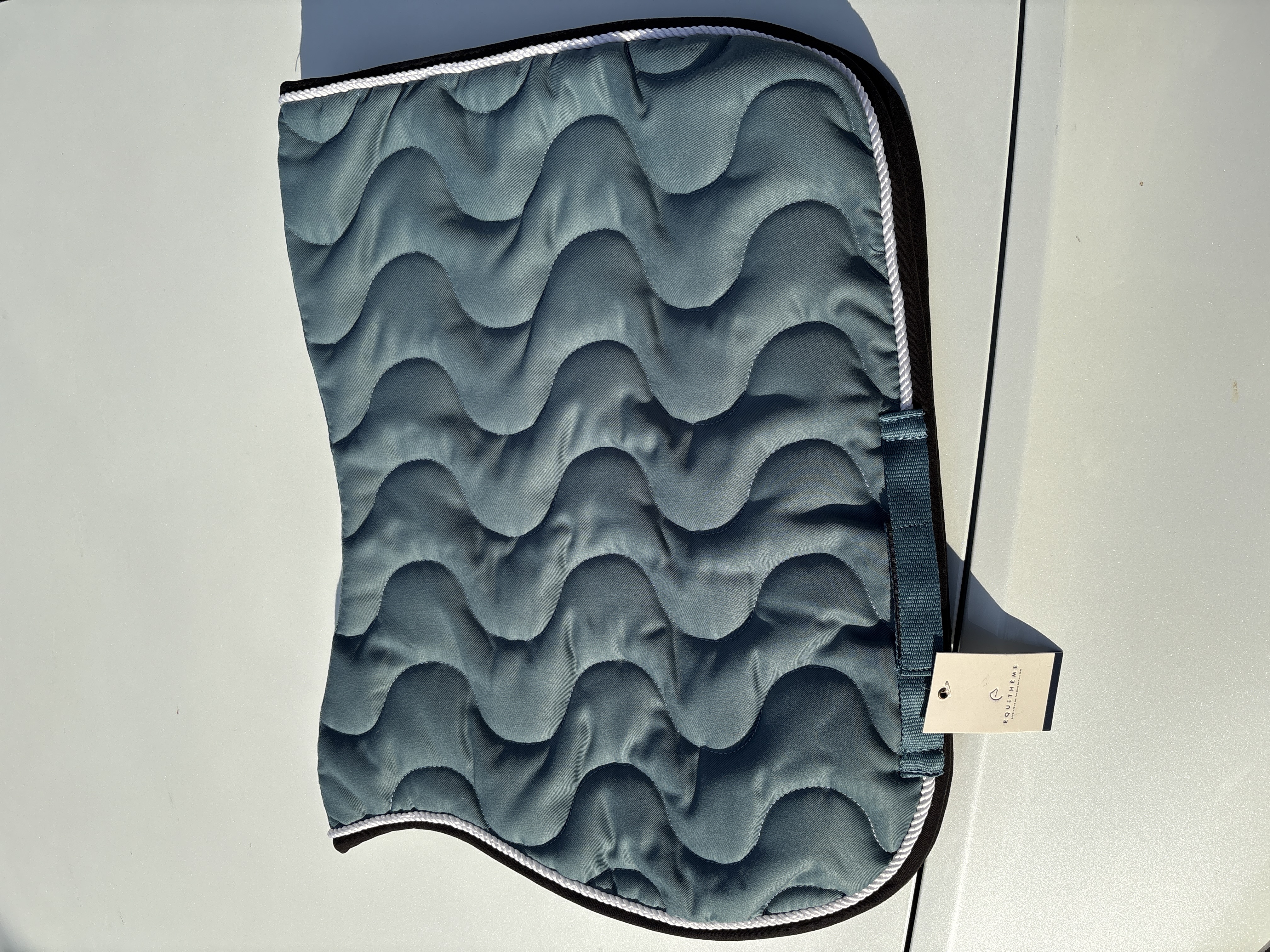 Très joli tapis équitheme taille poney, bleu canard, neuf.