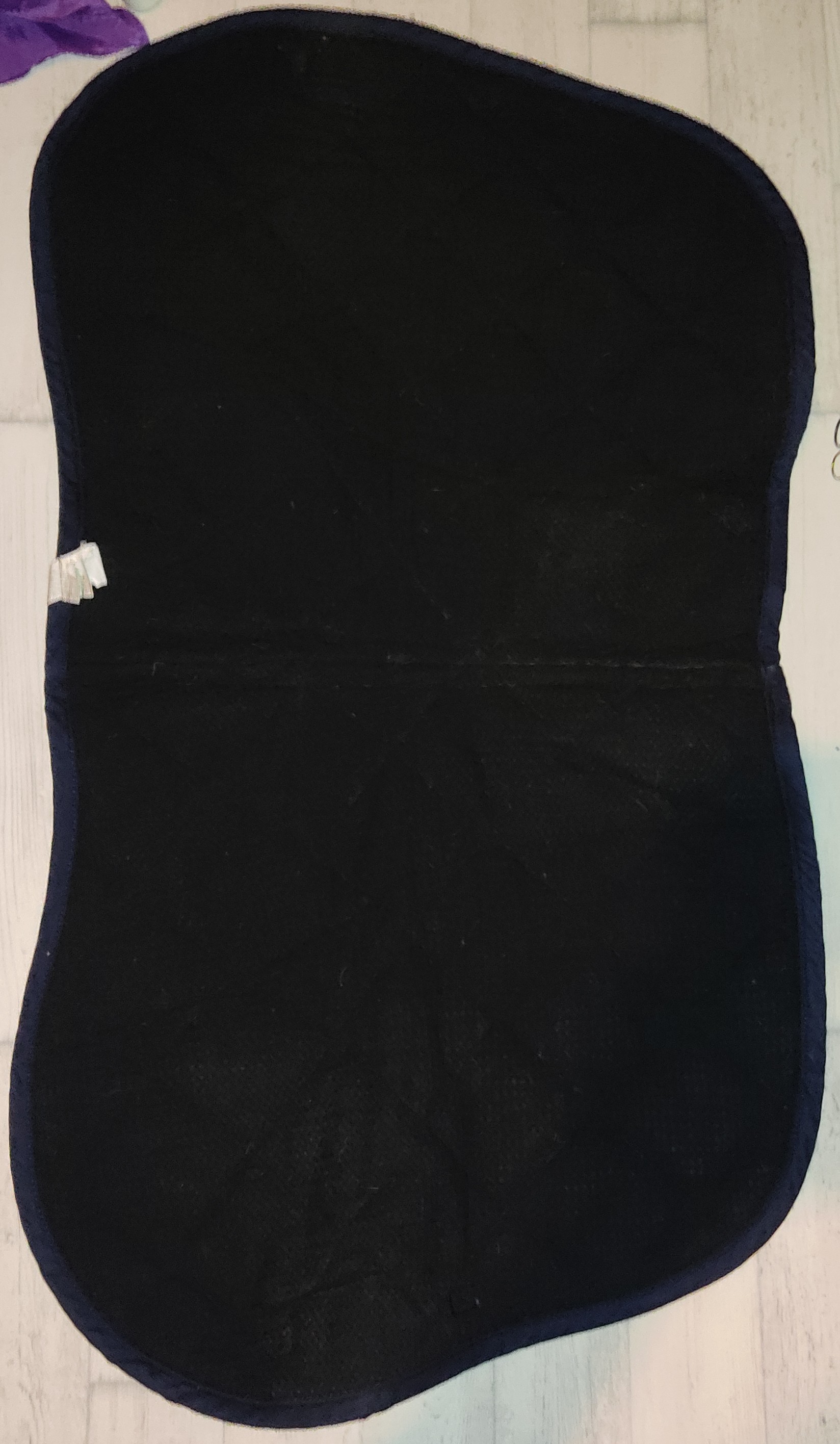 Tapis de selle de la marque Fouganza de chez Décathlon, taille cheval. Couleur bordeaux et bleu marine. Très bon état.