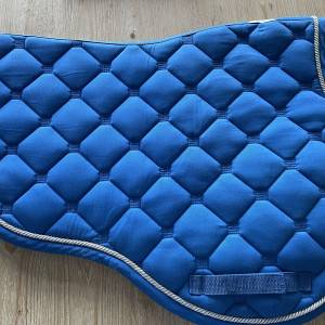 Tapis blanc pour selle de dressage de la marque Equithème. Jamais servi (le dessous est impeccable), mais à peine un peu jauni sur les bordures en regardant de près, à force d'être stocké.